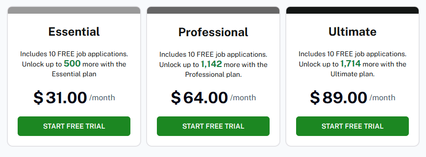 The Smart Applier offers a 3-day free trial that includes 10 job applications across all their plans. After those 10 applications, you’ll need to upgrade to a paid plan to continue using the service at scale.