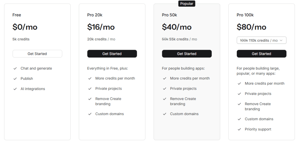 - Pricing and Plans Create.XYZ provides a range of pricing plans, starting with a free tier. However, for features like removing Create.XYZ branding and using custom domains, you’ll need to subscribe to a Pro plan. The ability to submit to the app stores may also be tied to a specific subscription level, so it’s essential to check their latest pricing and feature breakdown.